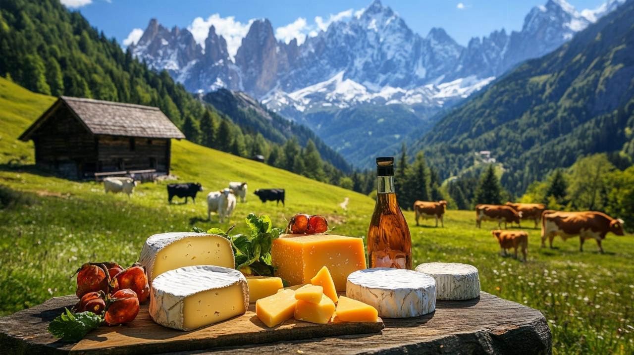 Les Alpes françaises sont le berceau de nombreux fromages d’exception, dont la réputation dépasse largement nos frontières. Cette région montagneuse, avec ses alpages verdoyants et son climat particulier, offre des conditions idéales pour l’élevage et la production laitière. La Savoie, notamment, peut s’enorgueillir d’une tradition fromagère remontant au 11ᵉ siècle, avec pas moins de 5 AOP et 2 IGP qui témoignent de l’excellence de son terroir. Parmi ces trésors gustatifs, on trouve particulièrement le fromage à raclette fumé de savoie qui séduit par ses notes boisées et son onctuosité incomparable lors des repas conviviaux d’hiver. Ce fromage, particulièrement apprécié pour sa capacité à fondre tout en conservant ses arômes complexes, représente parfaitement la diversité des saveurs alpines.